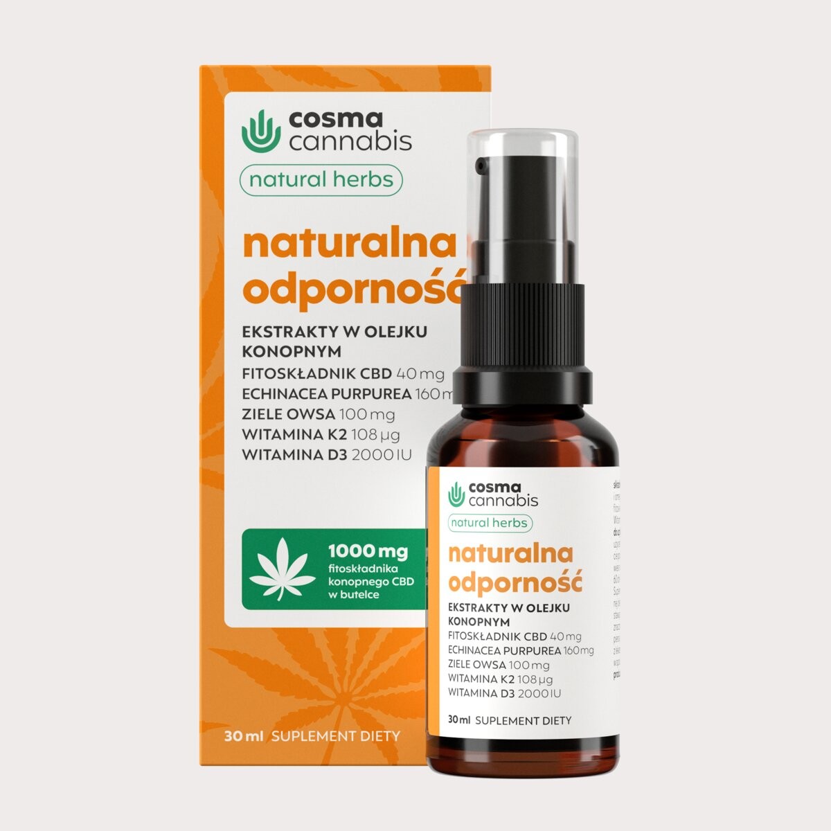 Cosma Cannabis Naturalna Odporność Natural Herbs 30 ml został stworzony z myślą o osobach, które chcą wzmocnić swój układ odpornościowy. Łączy działanie ekstraktów ziołowych z zielonym olejem z nasion konopi siewnej