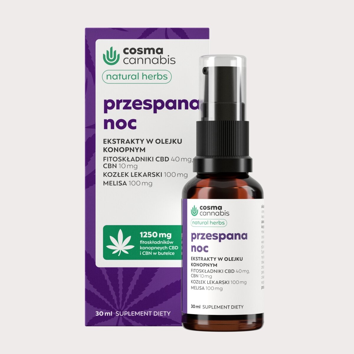 Cosma Cannabis Przespana Noc Natural Herbs 30 ml został stworzony dla osób poszukujący wsparcia w zasypianiu i spokojnym snie.